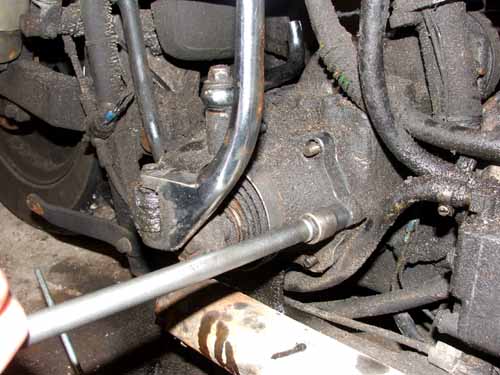 29 juni 2008. Achterbrug as Het is hoog tijd om de achterbrug te repareren. En als de achterbrug eruit moet, en dat moet ie, dan dient eerst de achterbrug as verwijderd te worden. De achterbrug as kan er echter alleen uitgeschoven worden als de achterste uitlaatpijp niet in de weg zit. Die moet dus los.