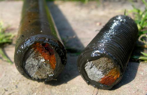 25 juli 2008 (4) Hildo´s vaste ingrediënt tijdens lassessies... Het werkstuk van te voren goed warm stoken zodat de lasrups direct redelijk vloeit. Aan het eind van het lassen de las langzaam laten afkoelen om harding en trekspanningen tegen te gaan. Dat doet u door direct na het lassen zo snel mogelijk uw gereedstaande, reeds brandende, hobbybrander op de las te richten. Gewoon de vlam er op houden en het materiaal koelt veel langzamer af. Het verwijderen van de slak gebeurt later. Als u er niet in gelooft, dan doet u het gewoon niet. Hildo heeft in ieder geval nog nooit een gebroken las gehad, dus er zou toch wat in deze techniek moeten zitten. Mag Hildo u alvast wat verklappen? Deze las breekt ook niet, en dat mag ook niet want Hildo's leven staat op het spel.