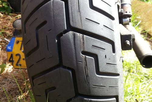 26 juni 2019. Gescheurd frame Op weg naar het werk reed de motor reed al niet helemaal lekker, beetje lekke band of uitgeslagen swingarm as lagers gevoel. Het blijkt een gescheurde framebuis, vlak boven de passagiers voetstep bevestiging. Andere kant ook al een keertje gehad, toen wat hoger. De onderzijde van het frame trilt en buigt duidelijk zichtbaar onder de aandrijfkrachten van de motor. Voorzichtig terug rijden en uitkijken met gas geven, no problemo.