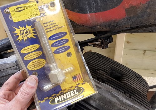 A) 20 juni 2019. Ouwe nieuwe Pingel Een Pingel is een begrip, performance benzinekranen voor mensen met hoge eisen aan doorstroomsnelheid en een forse beurs. Deze kraan zou gepolijst moeten zijn maar dat is ie niet en daarom kreeg Hildo deze Pingel destijds, iets van 20 jaar geleden, zomaar gratis. Zijn oude benzinekraan lekte al een poosje, en waarom repareren als u een echte Pingel hebt liggen? Adapter nut Deze kraan is voor 66-74 modellen en die hebben 3/8 NPT draad, Hildo heeft een 74-up aansluiting met een wartel. Met een speciale adapterwartel en wat teflon tape past deze ook op Hildo's 74-up style King Sportster.