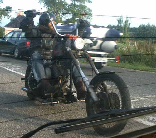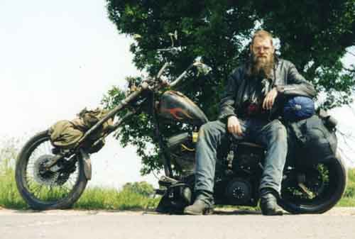 Ergens op doorreis in Slowakije 2001 De Harley wordt niet alleen ingezet tijdens een mooie zondagmiddag rit tijdens de zomer. Hildo rijdt er regelmatig mee naar zijn werk, zowel in de zomer als 's winters, en gaat nooit op vakantie zonder de Harley. Intussen is Hildo in alle landen van Europa geweest. In 1991 heeft Hildo de motor verscheept naar Amerika alwaar in 3 maanden tijd 24000 km werden afgelegd door 42 Amerikaanse en 2 Canadese staten. Tijdens de hele rit was het enige echte probleem een lekke voorband! Hopelijk binnen afzienbare tijd wil Hildo 3 maanden onbetaald verlof nemen om eens in Australië rond te rijden, uiteraard weer met de Harley! Eerst nog even sparen... 2013-update Anno 2013 schiet het niet op met de financiën voor de Australië-reis, kost wat hoor, retourtje voor motor, uzelf, plus de trip zelf. Aan geld smijtende sponsoren een chronisch gebrek dus: 'Wordt 'm niet meer'. Hildo haalt z'n schouders op, er zijn ergere dingen. Hij wil u nog wel even wijzen op de spreuk: 'Stel niet uit tot morgen wat gij heden kunt doen'. Toch nog iets uit de bijbel waar u wat aan hebt! Inmiddels rijdt Hildo stukken minder met de motor. De Harley kan het nog maar Hildo vindt langere afstanden steeds meer een opgaaf worden. Het 's winters rijden, hij is te starten tot -7 Celsius, doet Hildo al een paar jaar niet meer. Steeds sneller last van 'witte vingers', zelfs al vanaf +10 Celcius.