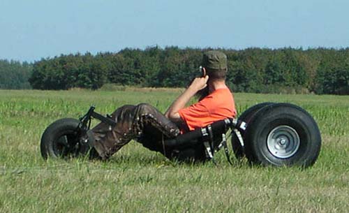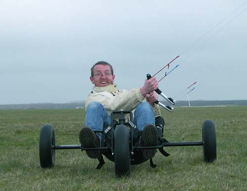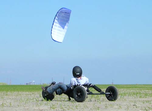 Buggyvliegers. Veel van dit soort vliegers wordt gebruikt voor het buggyen, dit is het voortbewegen van een karretje met behulp van een vlieger. Binnen het segment 'matrassen' zijn een aantal variaties. Ruwweg kun je zeggen 'racevliegers' en 'toervliegers', waarbij de racevlieger de duurdere vlieger is. Afgezien van de mogelijke verschillen in gebruikte materialen, is er een duidelijk verschil tussen race & toer vlieger. De racevlieger heeft, in verhouding tot de toervlieger een aantal fysieke verschillen. De racevlieger is breder, minder hoog en tevens platter (minder inhoud) en vlakker. Ok, dan nemen we dus een racevlieger! Sneller is beter! Niet altijd, want de voordelen van de snelheid brengen tevens een hele serie nadelen met zich mee. Doordat een racevlieger platter is, minder luchtweerstand, krijgt de vlieger in vlagerige wind sneller de neiging om 'in te klappen'. Inklappende vliegers zijn lastig en irritant, en zeker voor de beginnende rijder. Door de brede, maar niet hoge, vorm van de vleugel is de vlieger snel maar die kracht is tamelijk explosief. Je wordt hardhandig uit je buggy gerukt voordat je tijd hebt om met je ogen te knipperen, de kracht van een racevlieger kan een angstwekkende ervaring worden. Ook erg lastig voor de beginnende rijder en het kan zondermeer tot letsel leiden wanneer je op de grond smakt en verkeerd terecht komt. Een toervlieger is veel 'inklapbestendiger' doordat de vlieger meer volume heeft (dikker is). Daardoor is dit type ook minder aërodynamisch en daardoor wat langzamer. De minder brede en tegelijkertijd wat hogere vorm van een toervlieger geeft minder explosieve trekkracht bij windvlagen. Dit maakt een toervlieger gemakkelijker en comfortabeler te vliegen. Voor de geoefende rijder kan een toervlieger wat saai zijn. Hildo heeft zowel toer- (Little Devils 3.0 en 4.5 van Ozone en een Buster 3.0 van PKD) als racevliegers en zelf denkt ie, ondanks zijn beperkte buggycapaciteiten, dat rijden met racematrassen het meest uitdagend is.