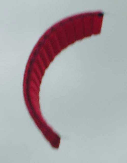 De Ozone 3.5 Razor Alle Razor's zijn wit aan de binnenkant, wat een beetje saai is, want de geweldige graphics zijn door de piloot zelf niet te zien tijdens de rit. De kleurcombinaties zijn ook beperkt want ze zijn er alleen in geel/rood en rood/wit. Let op de luchtopeningen aan de voorkant. Een groot gedeelte van de leading edge is gesloten voor betere aërodynamische eigenschappen en minder luchtweerstand