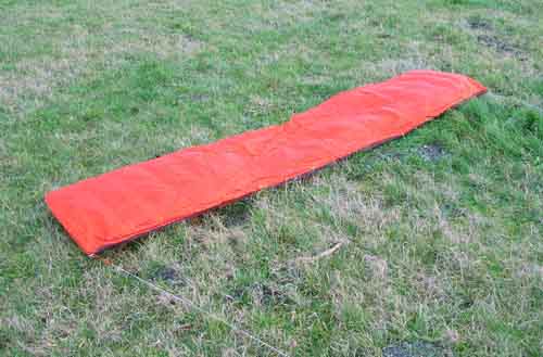 De Airfoil 2.80 (imitatie Flexifoil) De Siegers Vliegers Airfoil is er in drie maten 1.8, 2.35 en 2.80 m breed. Hildo moest natuurlijk de grootste. De Airfoil is een Siegers Vliegers kopie van de Flexifoil vlieger voor een fractie van de prijs. Het is een bijzonder matras doordat het een tweelijner is zonder toming. De vliegerlijnen worden rechtstreeks aan de flexibele stok bevestigd die over de volledige breedte van de leading edge loopt. Hoe het kan dat deze vlieger vliegt, is Hildo nog steeds niet duidelijk maar vliegen doet ie goed (een aangepaste Flexifoil heeft met dik 220 km per uur het wereld snelheidsrecord voor vliegers) en dat is dan ook direct het enige voordeel. De driedelige stok bestaat uit 2 stukken wit flexibel glasvezel en in het midden een stuk reguliere koolstof vliegerstok. De verbinding tussen de koolstof stok en de 2 glasvezelstokken (stalen of aluminium pijpjes) waren al na de eerste vlucht kromgebogen. Rommel! Het oplaten van de vlieger is bijzonder lastig (op een schaal van 1 t/m10 ligt het irritatie niveau op 11 bij Hildo) en vereist een tweede persoon. Als de vlieger wat langzamer vliegt in de hoeken van het windvenster, verliest hij z'n snelheid en bestuurbaarheid. Je kunt er enkel heel snel mee van links naar rechts vliegen en verder niks. Hildo's mening: Ik heb er spijt van!!!