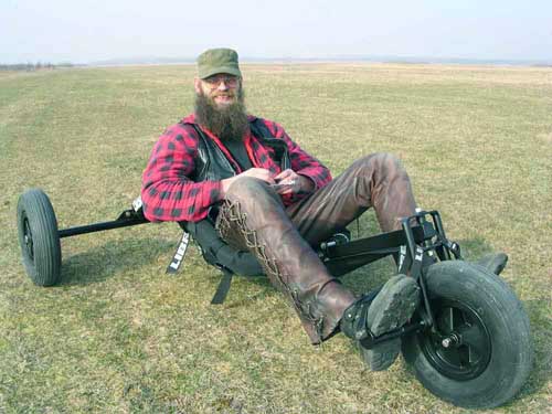 Een drie van de allerdikste buggywielen heeft ie ook al aangeschaft, net zoals de buizen en de rest van het metaal voor een Overkill Buggy! Nu nog bouwen. Hier de Super Wielen al even achterop de Libre gemonteerd, lijkt stoer!! Ze passen overigens niet niet in de voorvork van een standaard Libre buggy. Hildo heeft gemerkt dat ze wel wat meer weerstand hebben dan de standaard kruiwagenwieltjes maar de grip is een stuk beter en Hildo wordt de buggy al uitgerukt voor hij begint uit te breken. Hmmm...