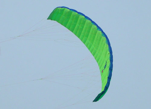 Hildo versus NasaWing NPW5 De kleine NasaWings zijn vrij vlot te vliegen, maar vooral in de grotere maten zijn ze sloom. Maar ze leveren een trekkracht te vergelijken met die van een locomotief. Constant, zonder rukken en weinig lift dus. Een uitstekende sleepvlieger en relatief veilig zolang je niets raakt op je sleeptocht. Hildo heeft een 2.24, een 4.85 (zijn persoonlijke favoriet) en een 9.5 m. Hildo moest en zou een keer vliegen met de 9.5 in windkracht 6, welk resulteerde in een dag ziektewet en twee weken krukken. Elke vlieger verandert in een beest bij teveel wind en dat is bij een NasaWing niet anders. De 9.5 vliegt log en langzaam, de 2.24 is erg vlot en de 4.85, uiteraard, er tussen in. Voor de buggy is de NPW5 zeer beperkt inzetbaar vanwege zijn geringe snelheid en 'upwindperformance'. Je komt er slecht mee tegen de wind in vanwege het smalle windvenster, als het al lukt. Door de grote hoeveelheid toomdraden heb je de lijnen zo maar in de war, goed opletten tijdens het aanknopen en loshalen van de vliegerlijnen is gewenst! Groot voordeel van de NasaWing is zijn lage prijs en robuustheid. Doordat er geen stokken of luchtkamers in de vlieger zitten, is hij haast niet kapot te krijgen. Ook is de vlieger daardoor erg klein op te vouwen en makkelijk om mee te nemen. Hildo's conclusie: niks voor in de buggy, maar wel een goedkope funvlieger met zeer veel trekkracht in de grotere maten. Leuk!
