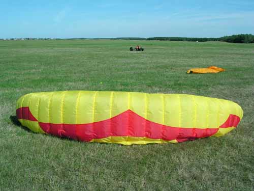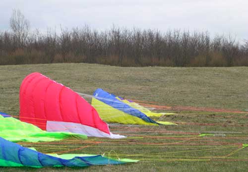 Drie op een rij Van links naar rechts liggen hier: Bora 3.7, Little Devil 4.5 en de Bora 4.5. De Little Devil is een toervlieger en dat is te zien aan de verhoudingen. Hij is smaller, hoger en dikker dan de Bora's en vliegt daardoor een stuk rustiger.